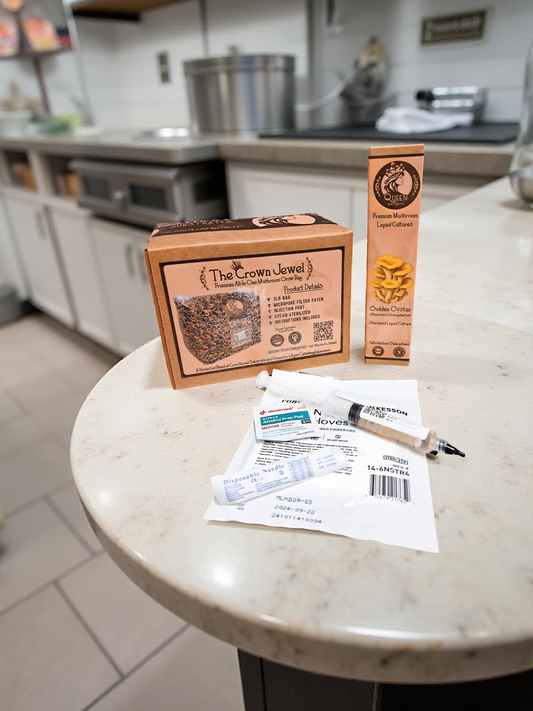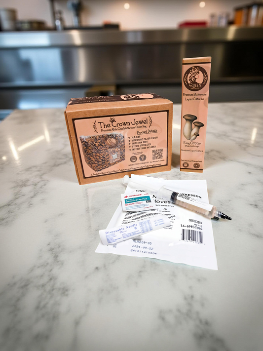 Ready to scale your empire? Each kit includes a 3LB Golden Harvest grain bag, 3LB Sovereign Soil bulk substrate, and a premium liquid culture syringe. Designed for bigger grows, better control, and bountiful royal harvests.